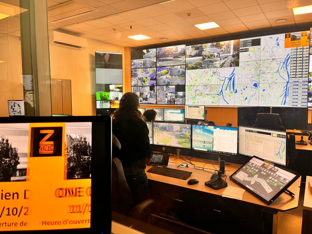 Au cœur du siège de l’Eurométropole de Strasbourg, un centre de pilotage de la circulation permet de visualiser les flux de véhicules. C’est aussi un moyen d’intervenir en temps réel sur les points noirs pour fluidifier le trafic. Ce service de l’information et de la régulation automatique de la circulation a été créé en 1978, un des premiers en France. Aujourd’hui, des agents sont présents 24h/24 pour contrôler la circulation grâce à 508 stations de mesure et d’analyse de trafic et 315 caméras placées sur les principales artères et les endroits stratégiques de l’agglomération.